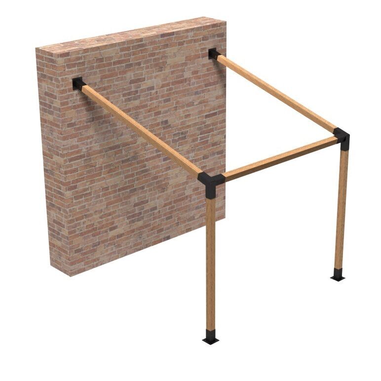 Pensado para estructuras ancladas a una pared de hasta 3×3 metros, con 2,5 metros de altura máxima y una leve inclinación de 15 grados para el techo. Este sistema incluye herrajes compatibles con maderas cepilladas de 4×4 pulgadas (90x90mm). Su diseño permite un armado firme y sin complicaciones, ideal para cocheras, gazebos o techos livianos.