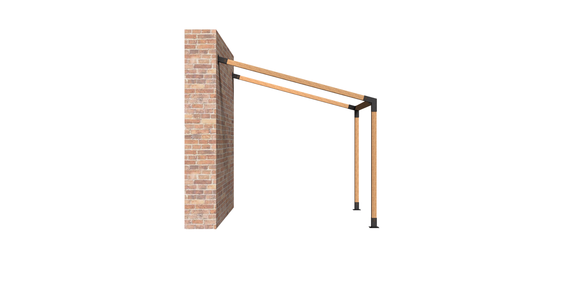 Pensado para estructuras de hasta 3×2,5 metros con 3,4 metros de alto máximo con techo inclinado a 15°, este sistema incluye herrajes compatibles con maderas cepilladas de 4×4 pulgadas (90x90mm). Su diseño permite un armado firme, nivelado y sin complicaciones, ideal para pérgolas, gazebos o techos livianos con caída de agua. Incluye: